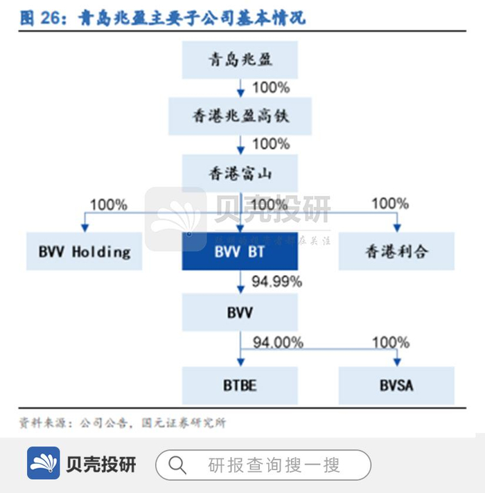 2021 年 3 月,公司公告拟采用发行股份及支付现金的方式购买重庆兆盈轨交、济南港通合计持有的青岛兆盈 100%股权。青岛兆盈持有 BVVBT(全球领先轨交车辆轮轴制造商)以及香港利合(BVV 亚太 区销售代理平台)100%股权。青岛兆盈下属富山公司持有 BVV 的知识产权、生产资质、品牌渠道等全部资产,本次交易完成后公司也将全面吸收 BVV 的所有资产。