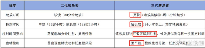 相较于二代胰岛素,三代胰岛素降糖药效更平稳、起效更快、持续时间更长、注射时间要求更低,当然,价格更贵。
