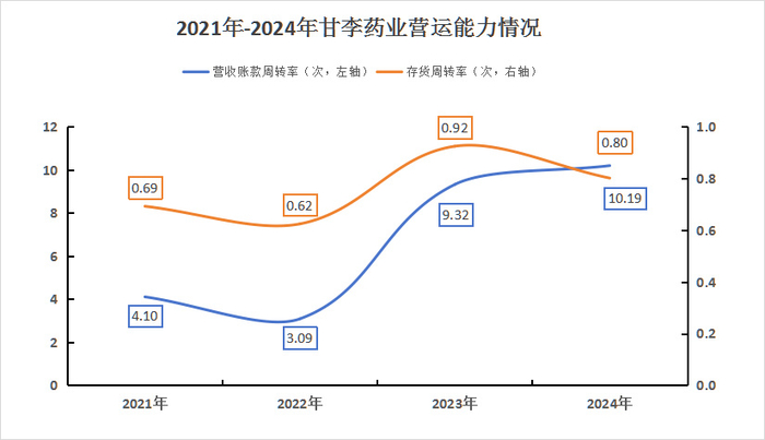 可以看到,2024年甘李药业的存货周转率和应收账款周转率较之前几年有了明显的提升。这两率的提高,也就意味着,公司从销售产品到收回现金的周期缩短,资金使用效率变高,流动性风险降低。