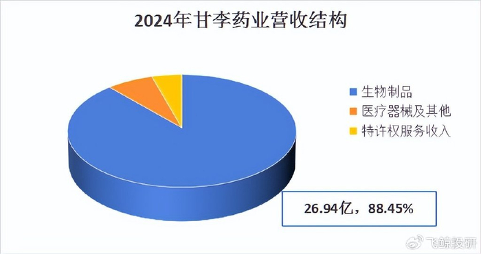 从2024年的营收结构来看,甘李药业的营收主要来自生物制品即胰岛素制剂,占比约90%。