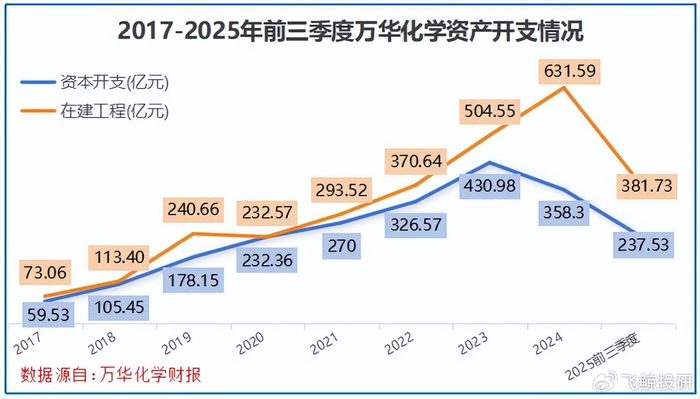 2022-2024年,公司累计投入资本开支高达1116亿元,直接推动在建工程规模大幅攀升,到2024年达到632亿元,短短三年规模翻了一番。
