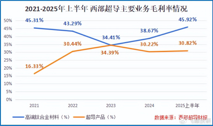 从近五年数据来看,高端钛合金材料毛利率普遍高于超导产品,2025年上半年甚至高达45.92%,是公司的“利润压舱石”。