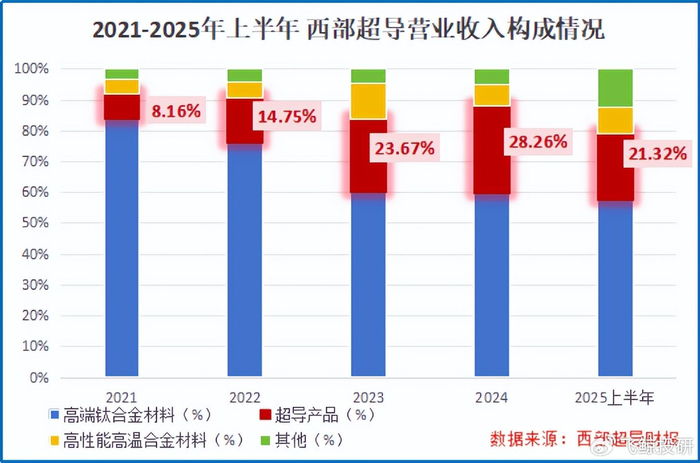 2021-2025年上半年,其超导产品在公司营业收入中的占比从8.16%快速提升至21.32%,业务不断壮大。