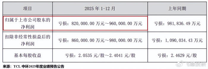 2025年,TCL中环归母净利润预计亏损82亿元至96亿元。