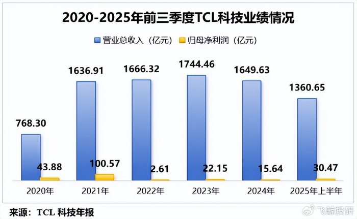 当然,这一点也可以从TCL科技的营收规模中得以体现。2025年前三季度,公司实现营收1360.65亿元,同比增长10.5%。