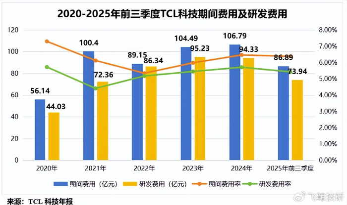 同期,TCL科技的研发费用也高达73.94亿元,研发费用率为5.43%。哪怕如此,公司每年的研发费用也不能减少。因为公司需要持续砸重金,才能保持技术优势。