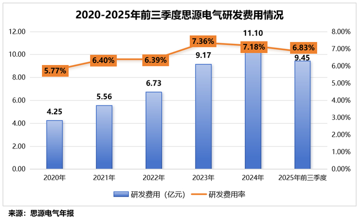 2020-2025年前三季度,公司累计投入研发费用超46亿元,研发费用率也提升至6.83%,远超国电南瑞(5.98%)、许继电气(5.15%)等同行。