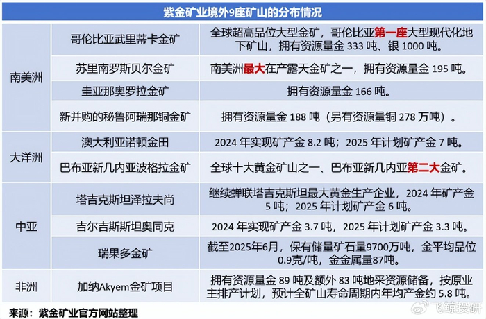 目前,紫金矿业在境外共拥有9座黄金矿山,分布于南美、中亚、非洲和太平洋等地区。