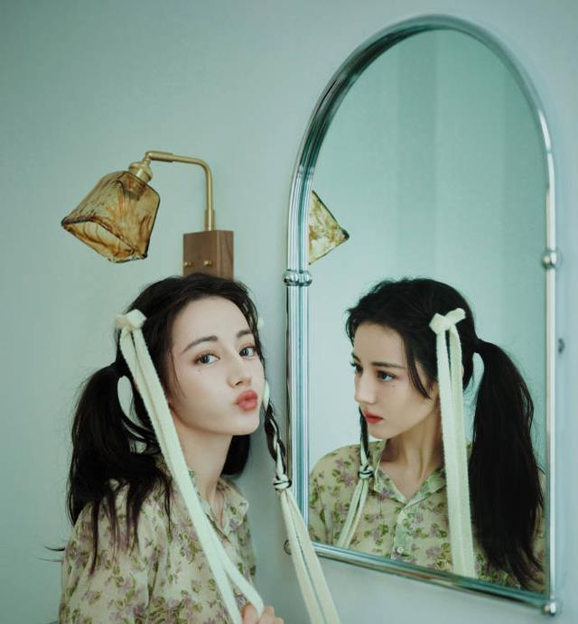 除了服装,迪丽热巴的发型也成为照片中的一大亮点。她扎着一双马尾,散发着天真可爱的感觉。双马尾的设计不仅简单经典,还凸显了她年轻的活力和俏皮的个性。这款清新甜美的发型与她的整体形象相得益彰,给人一种清爽愉悦的感觉。