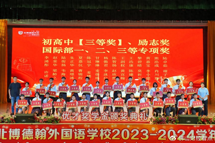 自2014年秋季开办以来,佛山市三水区北博德翰外国语学校一直怀揣着创办粤港澳一流名校、培养栋梁之才的教育梦想。凭借鲜明的办学特色、显著的办学成果和良好的社会形象,该校成为社会和广大家长关注的焦点,吸引了佛山地区乃至广东全省众多优秀学子前来就读。根据佛山市三水区北博德翰外国语学校董事会 “广育人才,激励优才” 的指示精神,学校自开办以来便设置了“优才奖学金”,每年举行颁奖典礼,隆重表彰获奖学子。