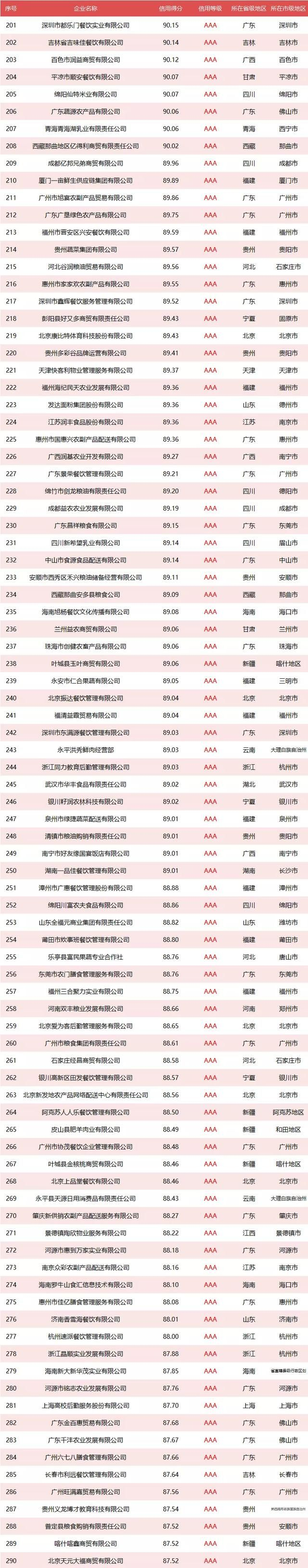 2020年度全国政府采购食材餐饮大数据信用TOP201~300