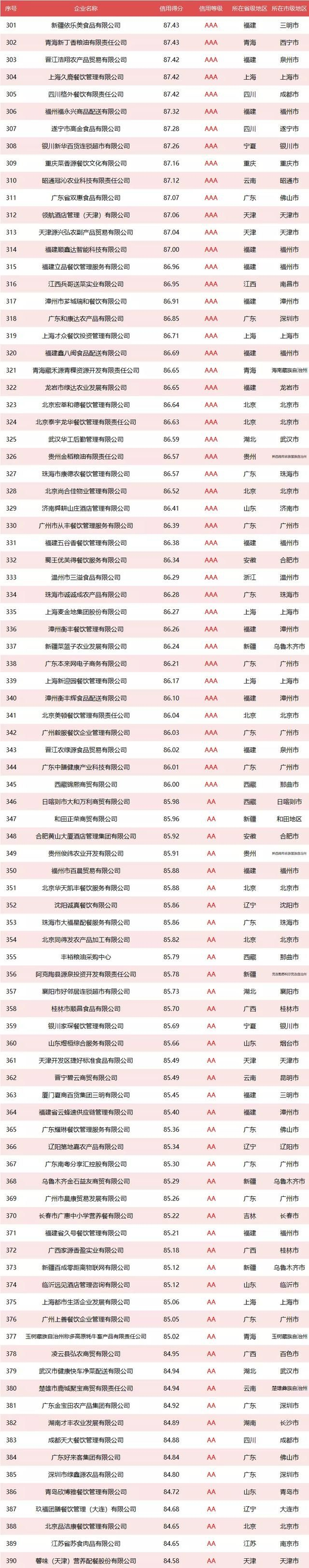 2020年度全国政府采购食材餐饮大数据信用TOP301~400