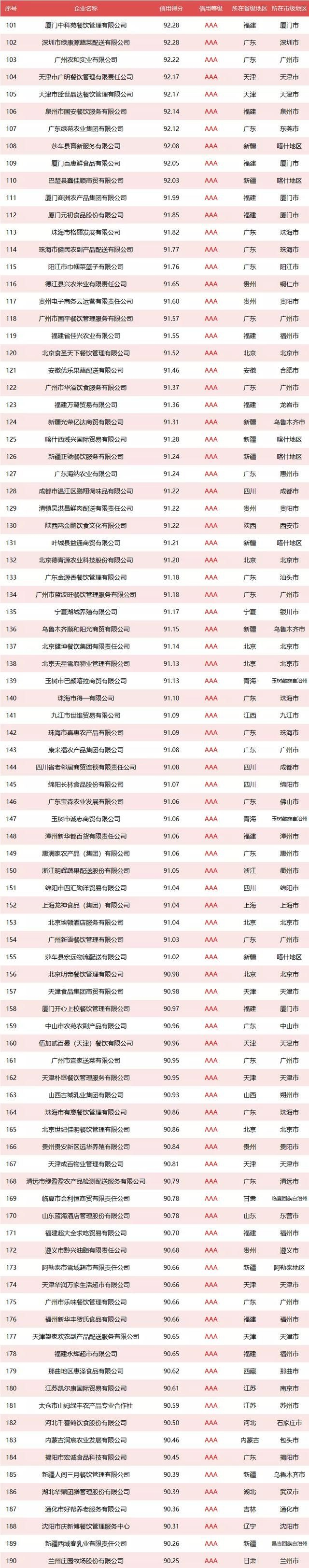 2020年度全国政府采购食材餐饮大数据信用TOP101~200