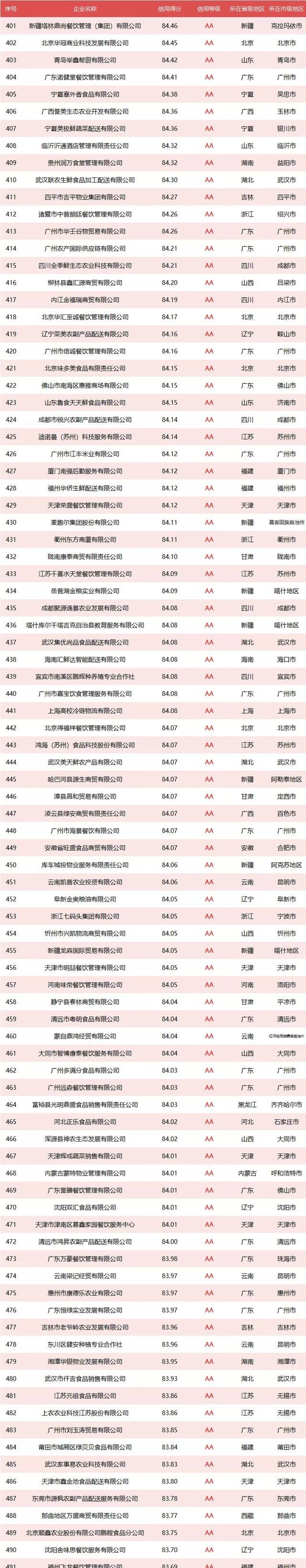 2020年度全国政府采购食材餐饮大数据信用TOP401~500