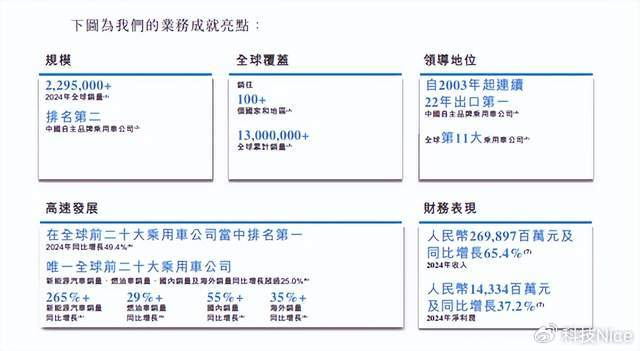 出口业务方面,奇瑞2024年海外销量突破65万辆,连续22年位居中国品牌乘用车出口第一,覆盖全球80余个国家和地区,在俄罗斯、巴西、墨西哥等市场市占率位列前三。