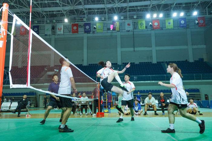 本次赛事共设网式毽球与花式毽球两大类别,涵盖竞技毽球、平踢毽球、五人围踢、混合接力赛及个人计数赛等多个项目,兼顾传统竞技性与群众趣味性,突出团队协作,全面展现了毽球运动的多样魅力与时代活力。总共有来自山东、河南、江苏、湖北、安徽等省份以及合肥工业大学、安徽师范大学、合肥大学、新华学院、铜陵学院等高校、寿县陶店回族中学、涡阳实验小学等37支队伍参赛。参赛人数300多人。不仅为毽球爱好者搭建了交流技艺、展示风采的平台,也为进一步推广全民健身运动、助力体育强国建设注入了新的动力。
