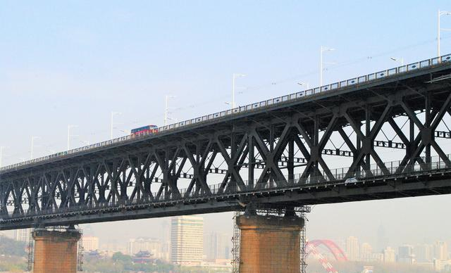 武汉长江大桥,每天过多少量火车和汽车呢?2018年6月14日这一天,单日通行车流量10万多辆,还有300多列火车车次。武汉长江大桥,采用管柱钻孔法,在当时,完成了世界上最新的深水筑墩管桩钻孔法。2013年,武汉长江大桥成为全国重点文物保护单位。
