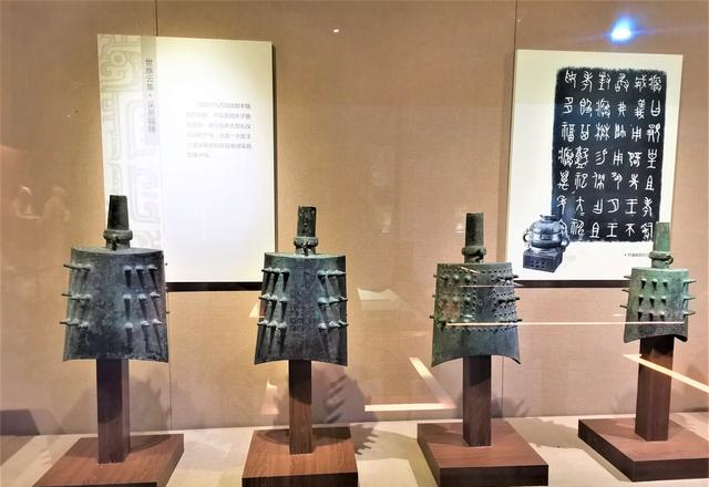 为什么说宝鸡青铜器博物院,当得起中国青铜器博物院的称号,原因就在这里。它的馆藏文物12000多件,一级文物120多件,馆藏精品像兴簋,逨盘,逨盉,还有四十二年逨鼎,还有四十三年逨鼎一组,墙盘,何尊,折觥,胡簋,秦公镈等等,都是精挑细选的精品文物。除了这些,临时展览,还有诸多看点,秦晋之好,心心相印,一沙一世界,民国政要等等展览。图中是宝鸡青铜器博物院展出的编钟。