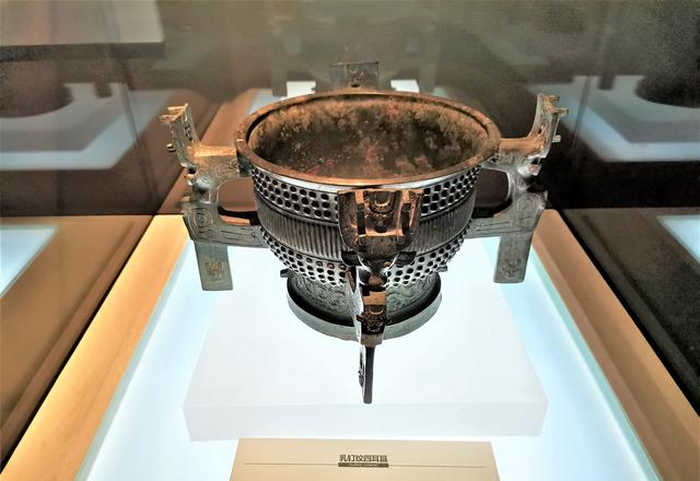 宝鸡青铜器博物院,有120多件一级文物,像何尊,折觥,以及墙盘,厉王胡簋,以及秦公镈,等等。现在博物院有文物12000多件,除了青铜器,也有铜镜,西周玉牛首,唐彩绘力士俑,西周伯各尊,佛造像,凤鸟纹方座簋,王盂圈足,伯公父勺,商尊等等。图中是馆藏四耳簋。