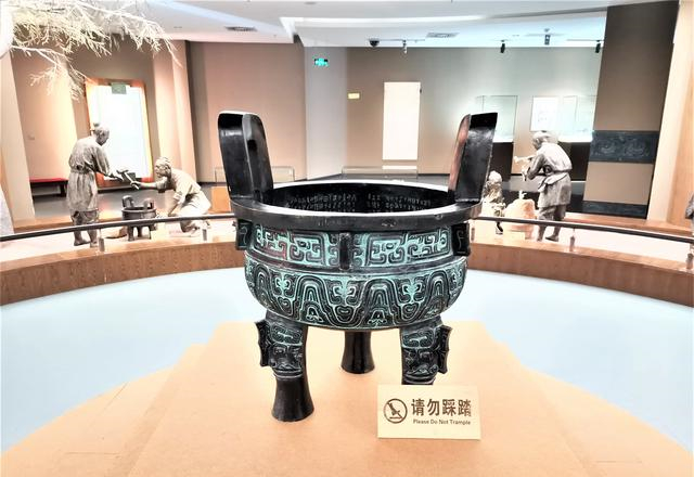 青铜器博物馆,给人的感觉就是震撼,这些文物跨越数千年历史,展现在世人面前。博物馆最早在古金台观里,当时博物馆的藏品是1.1万件,大部分是铜器,数量是5740件,当时一级藏品是45件。第二个馆,在关南路,1998年对外开放。公元627年,在宝鸡发现了刻有神秘文字的石鼓,石鼓被誉为中国九大镇国之宝之一,康有为说它是中华第一古物。所以2006年,在石鼓山建造青铜器博物院。2010年博物馆落成,2017年获得国家一级博物馆授牌。图中是博物馆内展出的四十三年逨鼎一组。这个应该是仿品。