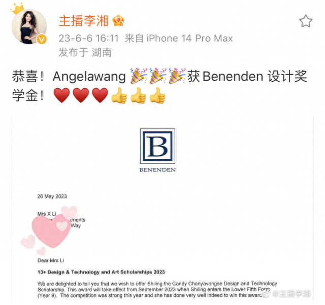 学校发给李湘的邮件中,就明确写道: