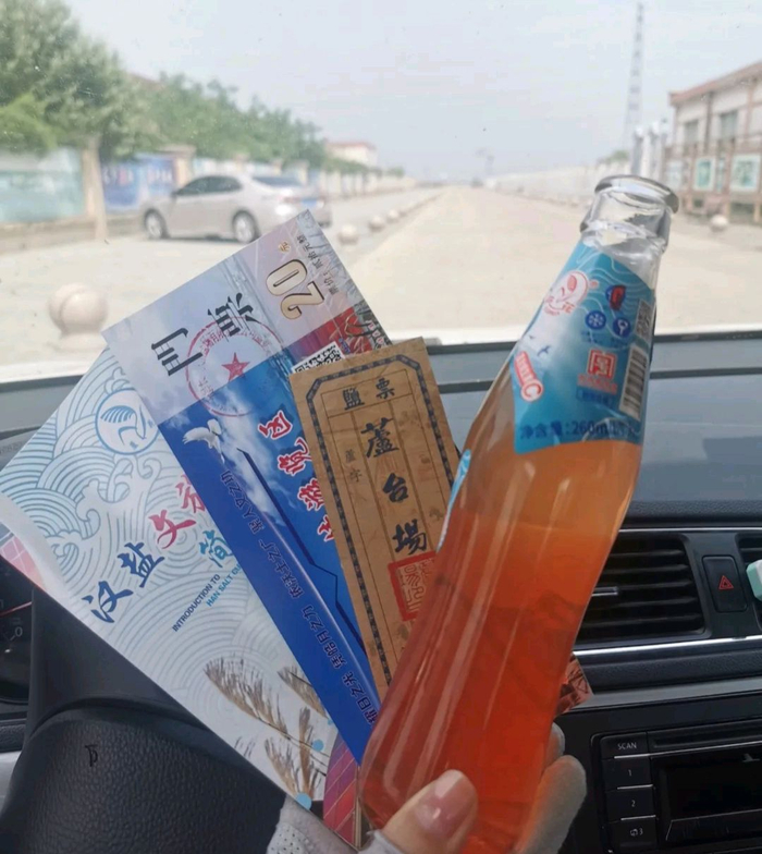 来到这里除了盐之外最大的感受就是,进入游览区你要购买一张20元的门票,这20元的门票说它是票倒不如说是一个代金券了,因为用这张票你可以在这里换取20元的东西,比如说儿时回忆的山海关老汽水,而且是海盐味道的。