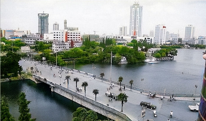 图为90年代的南通南公园桥。1917年,张謇创建南通五公园,在南公园与中公园之间建有一座跨濠河的桥,今名南公园桥,当时同时建了四座公园桥,南公园桥是第三桥。南公园桥还曾用中公园桥、公园二桥,解放桥等桥名,100多年过去了,南公园桥至今仍是南濠河上重要的通道。
