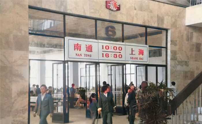 90年代的南通港候船厅。南通港新候船大楼启用于1989年,候船大楼上下两层,宽敞整洁。那时的船票常常一票难求,售票窗口前总是排着长长的队伍。
