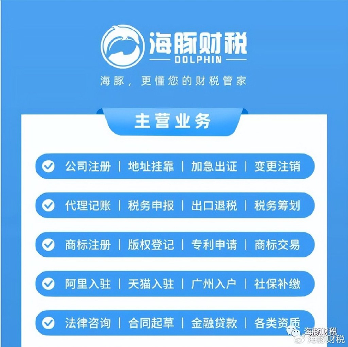 还在为繁杂的财税政策头疼?担心潜在的税务风险? 关注海豚财税,一站式解决您的财税困扰! 我们提供: