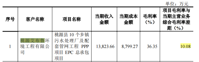 2020年新增客户桃源艾布鲁环境工程有限公司为公司的关联方,2020年与公司的交易金额为1.38亿元,合作项目为桃源县10个乡镇污水处理厂及配套管网工程PPP项目EPC总承包项目,合同约定由子公司桃源艾布鲁承担运营服务。桃源艾布鲁环境工程有限公司成立于2020年8月14日,其为公司与桃源县城市建设投资开发有限公司共同成立的PPP项目公司,其中艾布鲁持股90%。