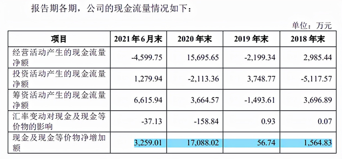 从现金流量上看,科捷智能的经营性现金流量严重不足,除2020年大额融资年产生了经营现金流入外,其他都为微量流入或流出。报告期各期,公司经营活动产生的现金流量净额分别为2,985.44万元、-2,199.34万元、1.57亿元和-4,599.75万元。科捷智能称应收账款总体回款信用风险较小,但由于公司在产品交付备货期需要提前支付的现金金额较大,公司客户回款受项目周期较长影响,客户通常按项目重要节点向公司支付结算款项,导致报告期内存在经营活动产的现金流量净额低于当期净利润或为负的情况。
