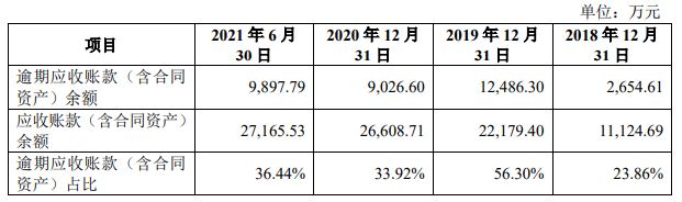 报告期各期末,科捷智能应收款项中逾期应收账款的占比分别为23.86%、56.30%、33.92%和36.44%。