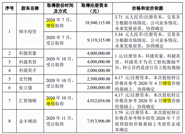 其后2019年9月,日日顺创智、方卫平增资进入,2020年3月18日,日日顺创智再增资,邹振华通过受让股权进入。公司最近一年新增股东的持股数量、变化情况、取得股份的时间、价格和定价依据情况如下: