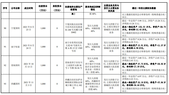 据(2021)赣0104民初813号文件显示,2019年,国科恒泰与南昌恒律企业管理咨询中心(有限合伙)以六四开比例共同成立江西国科盛世医疗科技有限公司,位于江西省南昌市,主要从事医疗器械的入院直销业务。两者因股份纠纷起诉至法院,于2020年4月21日立案。