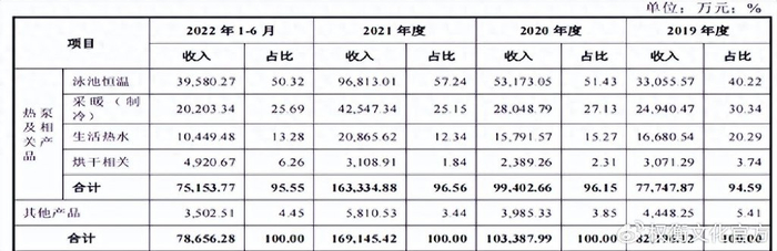 报告期内,公司泳池恒温产品销售收入分别为3.306亿元、5.317亿元、9.681亿元和3.958亿元,分别占主营业务收入的40.22%、51.43%、57.24%和50.32%。但是由于2022年上半年俄乌冲突对全球经济的冲击,海外泳池市场需求出现了一定下滑导致公司2022年1-6月泳池业务收入较2021年1-6月下滑。泳池恒温产品主要以外销为主,泳池恒温产品外销比例分别为94.11%、95.23%、96.95%及97.76%,泳池恒温产品受汇率影响较大。