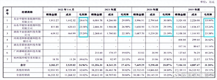 报告期内芬尼科技销售给前员工省级经销商北京中能恒业能源科技有限公司、山东中能恒业能源科技有限公司、湖南丰谊能源科技有限公司的毛利率相对非前员工经销商毛利率较低,对此公司称,一方面因为上述经销商需要承担其销售区域范围内的产品品牌推广、分销渠道的开发、产品安装指导和售后技术服务等职能,可以享受省级经销商价格体系,导致毛利率较低;另一方面因为其销售产品包含毛利率较低的商用产品,使得其综合毛利率存在一定差异。