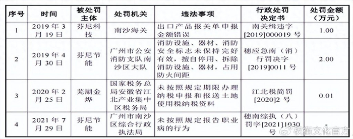 报告期内,公司存在4起行政处罚,处罚金额合计3.01万元。主要为未按规定报告职业病的行为,未按照规定期限报税和涉及出口报税。