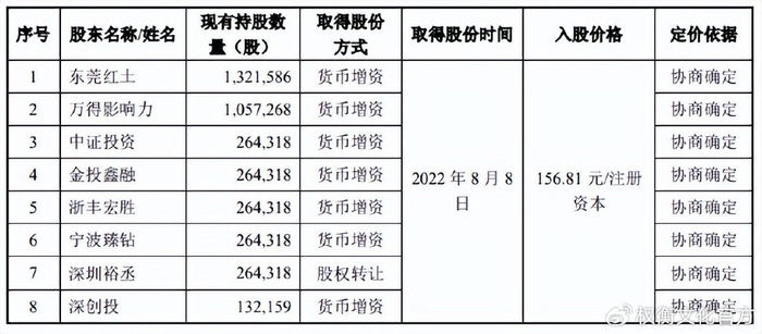 申报前十二个月,宇谷科技新增8名股东,取得股份时间为2022年8月8日,入股价格为156.81元/每股,包括了本次发行的保荐人、主承销商中信证券通过中证投资间接持有公司0.88%的股份。公司于2021年7月、2021年12月、2022年4月以及2022年8月的增资及股权转让中与投资方签署的投资协议中含有董事、董事会观察员委派权、知情权与检查权、上市前的股权转让、反稀释、股权回购等特殊权利条款,相关条款为中止状态。