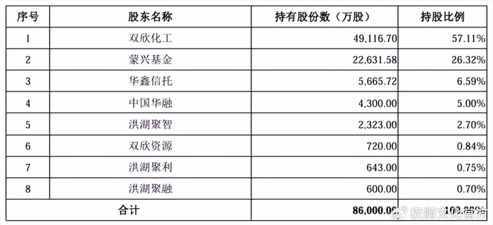 最新的一次股权转让为2020年12月22日,华鑫信托受让双欣化工持有双欣环保5,665.7224万股股份,成为第三大股东,持有6.59%的股权。
