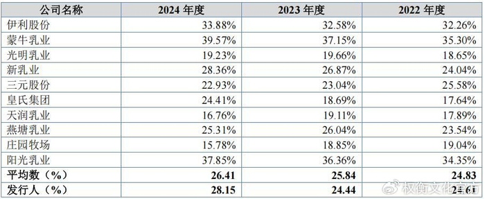 报告期内,公司的主营业务毛利率分别为24.45%、24.70%和28.29%,呈持续提升的趋势,主要系报告期内由于国内市场生鲜乳供需失衡,导致公司外购生鲜乳成本持续下降所致。