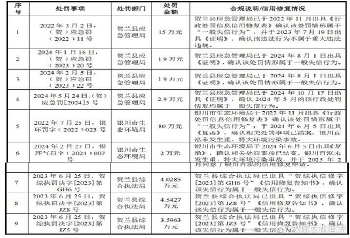 在建工程转固占项目总投资比例较高,报告期受到多次行政处罚