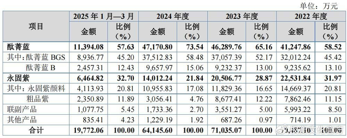报告期内,公司酞菁蓝产品受益于我国对印度的贸易政策变化,销售收入持续增长。永固紫产品受原材料价格下降和海外需求疲软因素以及2024年子公司银川百泓永固紫生产车间火灾事故及临时性技改停工影响,2023年和2024年收入均同比下滑,2024年下半年起随银川百泓各车间陆续恢复正常生产,永固紫产品销售金额出现回升。