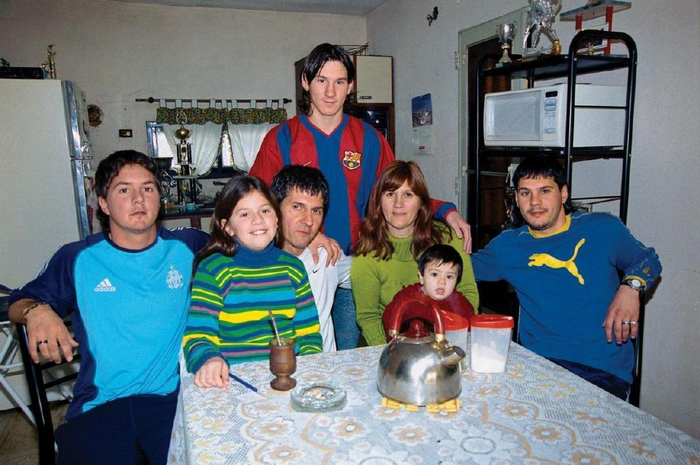 2003年,上图中的梅西与他的家人在罗萨里奥合影,父母已做了爷爷奶奶。小时候,梅西被诊断出患有生长激素缺乏症,但却非常有足球天分,很小就进入当地一家足球俱乐部时行青训。梅西的父亲非常有头脑,他促成了西班牙巴塞罗那俱乐部签下自己的当时13岁的儿子,在看中梅西潜力的俱乐部里,只有巴塞罗那愿意支付梅西的治疗费用。