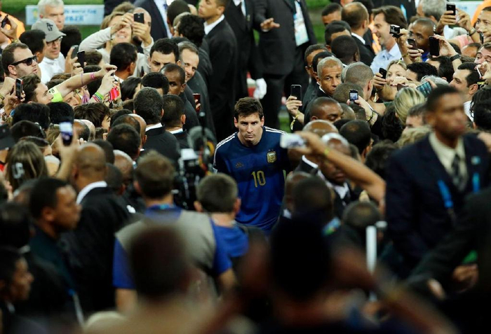 2010年南非世界杯比赛前,阿根廷巨星也是该队当时教练的马拉多纳摸着梅西的头,但这届世界杯阿根廷队依然没有打进四强。