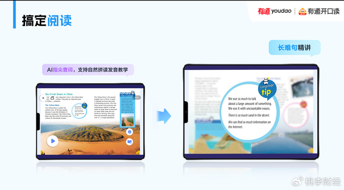 具体来看,针对词汇,增加自然拼读学习,通过情景化讲解以及声音、动画等多模态的形式加深记忆;针对阅读,产品配套提供全套《牛津英语话中国》分级读物精讲内容,通过AI指尖查词功能和老师讲读的配合,帮助理解不同难度的文章内容,提升阅读力;针对听说和写作,增加相应训练的互动占比,并由“子曰”教育大模型加持的AI作文批改功能,提供不限次数的批改与及时反馈,让孩子能在充分的训练中实现能听懂、能说出口、能地道表达。