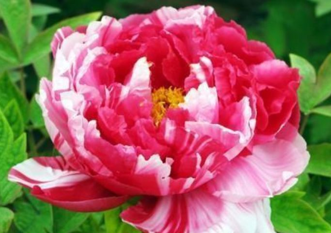 二乔牡丹花朵雍容华贵,花蕾偏圆型,花乃复色,同株同朵都可町开玫红和粉色两种花色,花丝上部白色,花蕊长圆形。二乔牡丹是中开花品种,亦为丰花品种,一株能开百朵花。