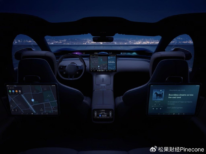 所以,小米天际屏全景显示是一个根据你的需求全局智能联动的交互系统,此外,小米YU7 后排还配备了一块可移动控制屏,可实现控车、导航、音乐等体验。