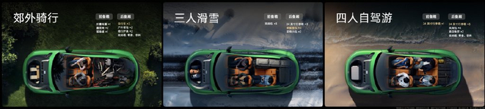 舒适豪华的乘坐体验,离不开宽敞的空间。小米YU7 在运动姿态造型的前提下,车内拥有极致的空间效率。乘坐空间方面,以 188 cm假人模型开发,小米YU7 前排头部空间 100 mm、后排头部空间 77 mm、后排膝部空间 73 mm,均超越特斯拉Model Y、保时捷卡宴。其中,小米YU7 垂向空间利用率非常极致,得益于更高效率的小米CTB一体化电池包和地板厚度减少,小米YU7 前后排头部空间宽敞通透。储物空间方面,小米YU7 整车储物容积有 1970 L,其中前备箱容积 141 L、后备厢容积 678 L、后排放倒后备厢容积 1758 L、舱内收纳容积 71 L。面对一家四口自驾游场景,小米YU7 前备箱能容纳 1 个 24 寸行李箱,后备厢能轻松容纳 3 个 24 寸行李箱、4 个双肩包和零食饮料等。