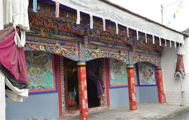 在贾尔藏村人们常常会提及“宝贝佛爷”这个词,说话间人们无不透着对其的崇敬之意。“宝贝佛爷”是当地人对宗喀巴大师的尊称,这种崇敬集中表现在村子的贾尔藏寺上。贾尔藏寺也称尕寺尔,被村民誉为“小塔尔寺”,始建于元末明初,位于贾尔藏村最中心位置,坐东朝西,占地0.8亩,由山门廊坊和大殿组成,雕梁画栋、布局严整,造型古朴典雅。