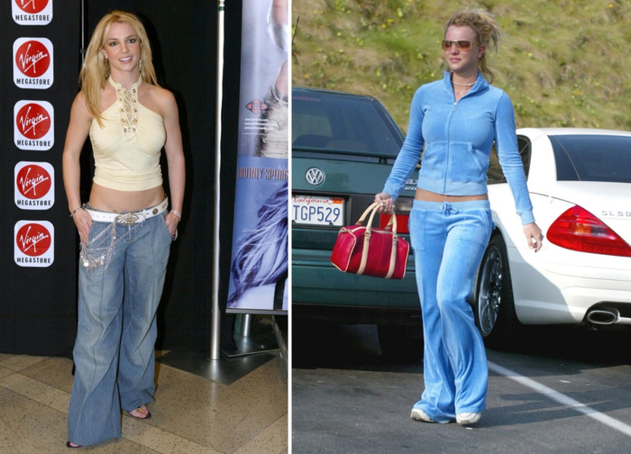 △ 左图:Britney Spears低腰阔腿牛仔裤;右图:Juicy Couture Tracksuit(来源:Glamour)